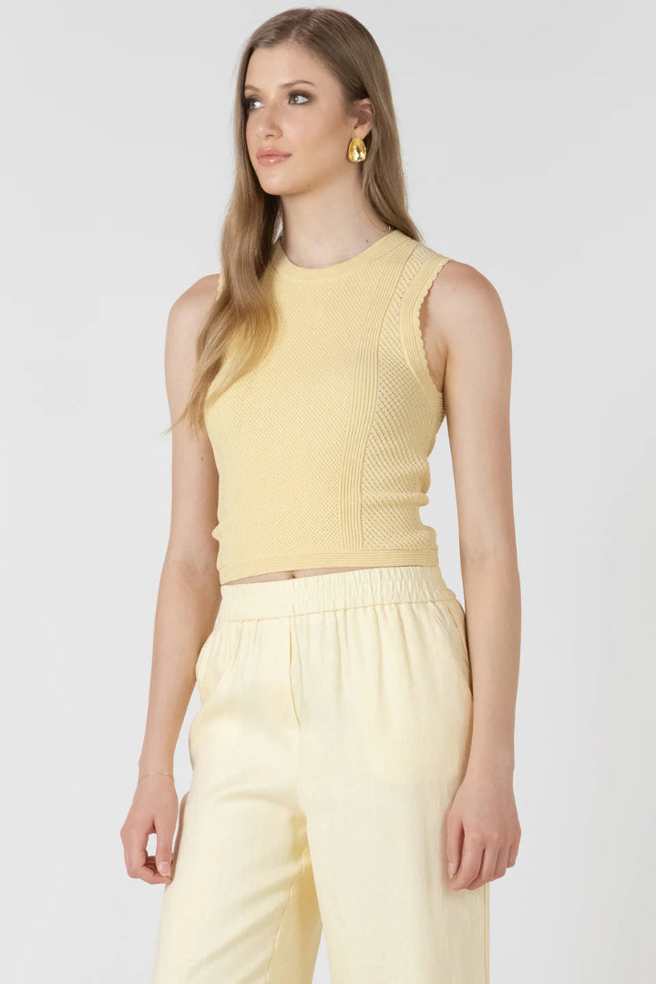 Soft, feminine, and effortlessly refined — the Miley sweater top by Black Tape is crafted in a delicate pointelle knit with scalloped edging for a...